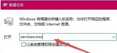4、这时在打开的Windows运行窗口中,输入命令services.msc,然后点击确定按钮。
