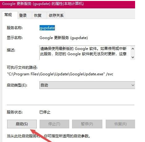 8、接下来用同样的方法再启动另外一个Google更新服务项。