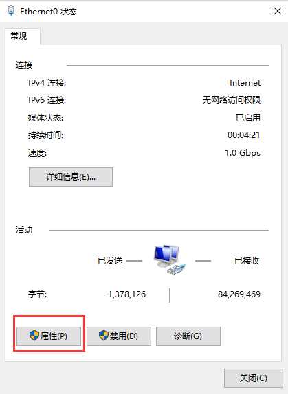 7、回顾过去,你会发现IPV4连接的状态变成了“IPV4连接”Internet这时笔记本就可以正常上网了。