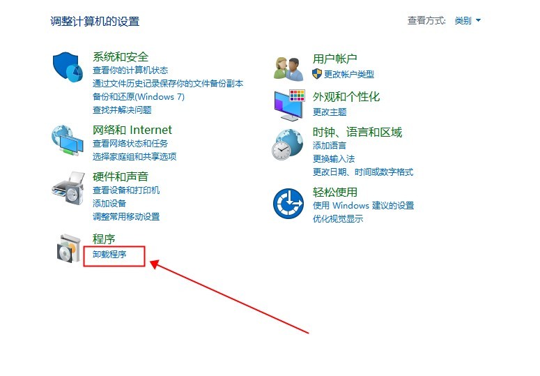 1、首先我们需要在电脑上打开【控制面板】,并将【查看方式】设置成【类别】。