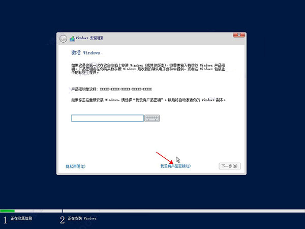 5、秘钥可以先选择“没有产品秘钥”选项。