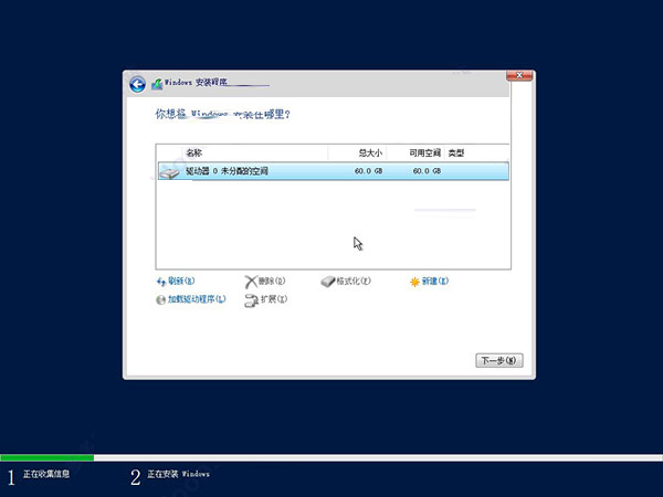 注意:由于小编这里采用虚拟机操作,划分的虚拟硬盘没有激活,所以只能够选择“自定义”,因为需要激活硬盘