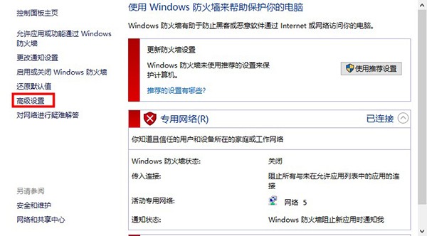 2、接着在打开界面中点击左侧的【高级设置】选项。