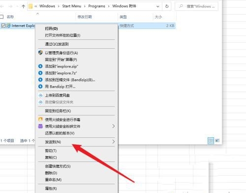 3、右击ie程序后点击菜单中的【发送到】选项。