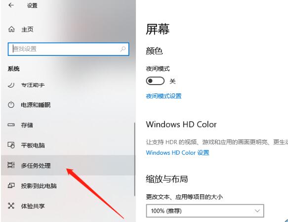 2、在打开的界面中,点击左侧的“多任务处理”选项。