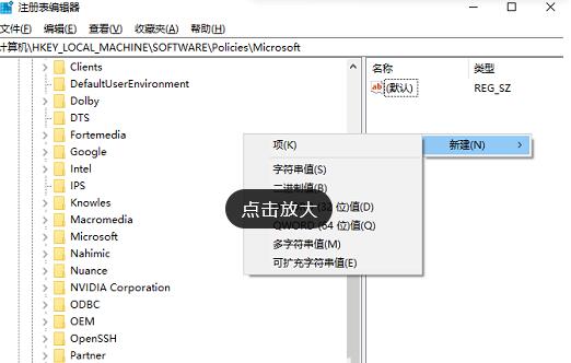4、右键点击Microsoft注册表项,在弹出菜单中依次点击“新建/项”菜单项。