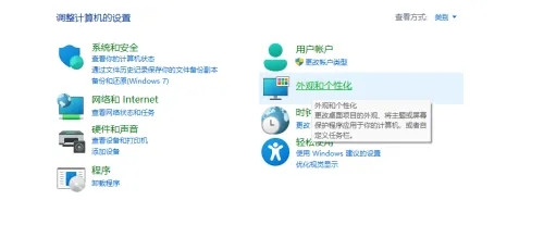 2、打开“控制面板”并进入“外观和个性化”选项。