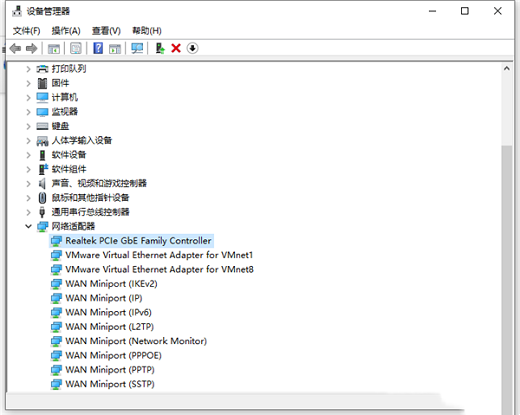 2、进入页面后,在页面中找到“网络适配器”选项,双击该选项,然后点选“Realtek PCIe GBE Family Controller“选项。