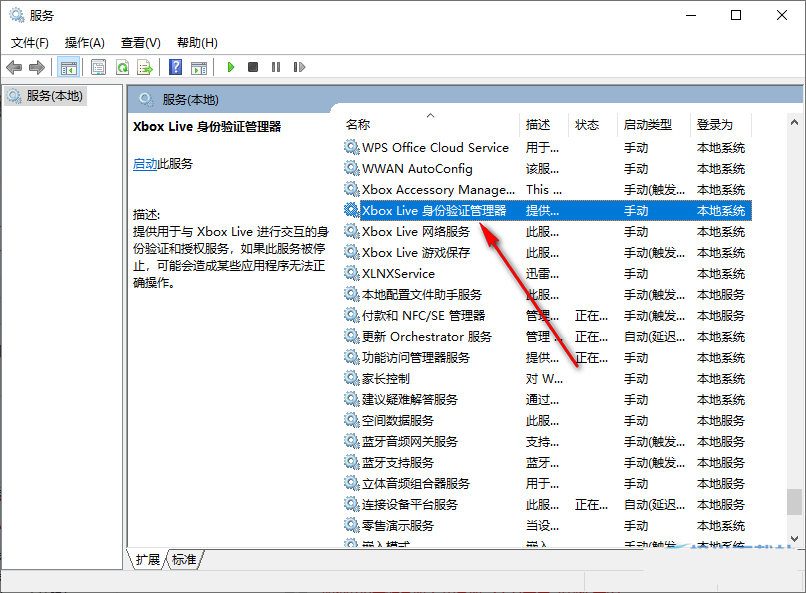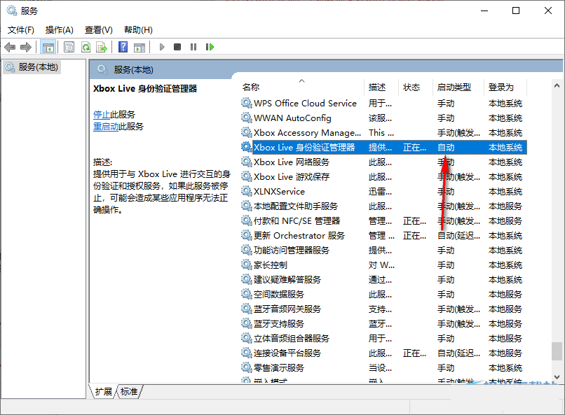 5、最后我们返回到服务的页面中,可以看到Xboxlive身份验证管理器后面的状态是自动,之后你重新连接Xboxlive即可。