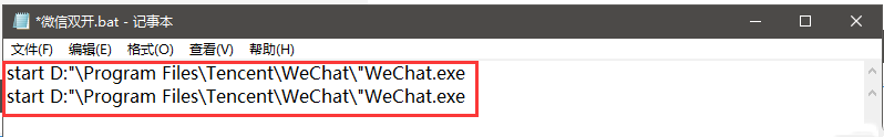 13、退出已经登陆的微信,双击微信双开.bat ,此时可以打开两个微信程序(重叠在一起)。