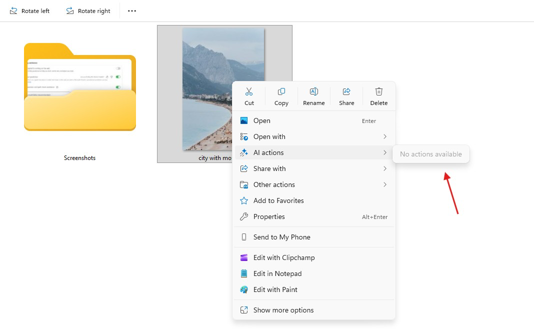幸运的是,纯净之家在 1 月 31 日报道过,微软已经决定大幅调整 Win11 的 AI 战略,该公司已经做出改进:如果没有可用的 AI 操作,那么会隐藏该选项。