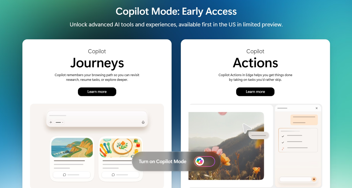 除此之外,微软最近还在 Edge 浏览器中加入了 Copilot 模式,包括“Copilot 旅程”和“Copilot 操作”。