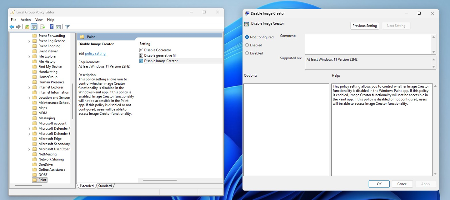 目前有两种方法可以移除其中的 AI 生图功能:注册表编辑器和组策略编辑器。