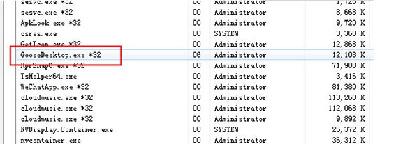 3、想要关闭的话,打开任务管理器,找到GooseDesktop进程,将其关闭即可,或者长按ESC键就能赶走大鹅。