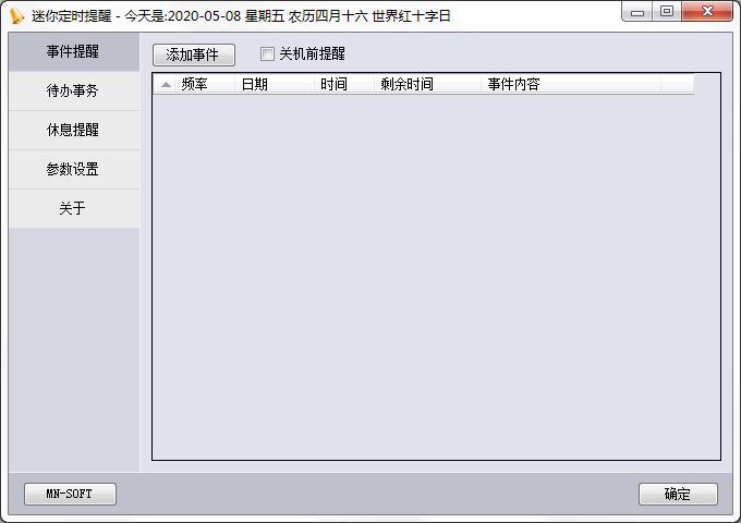 1、进入迷你定时提醒工具主界面,点击事件提醒,可以在右侧框架中找到需要提醒的事件日期、事件、剩余时间以及时间内容
