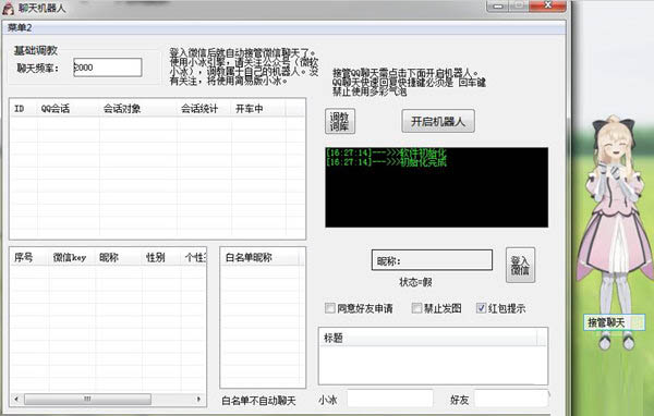 接管微信/QQ自动聊天功能,按说明设置即可使用等等功能。