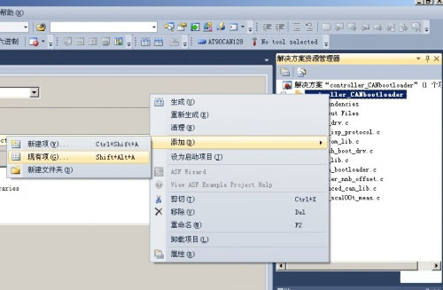 方法:右键点击项目名称,我这里是“controller_CANbootloader”,选择“添加”--“现有项”