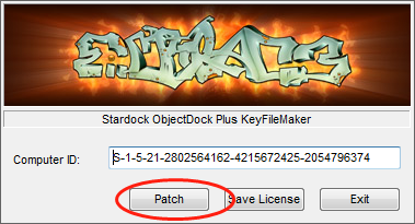1、下载后解压到你需要的位置得到ObjectDock Plus2.0文件夹,首先KeyGen注册机点击“Patch”按钮。