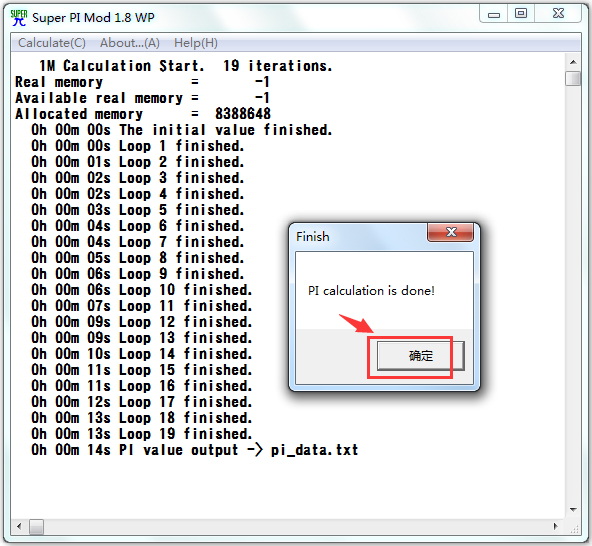 Super PI(CPU稳定性检测工具) V1.8 英文绿色版