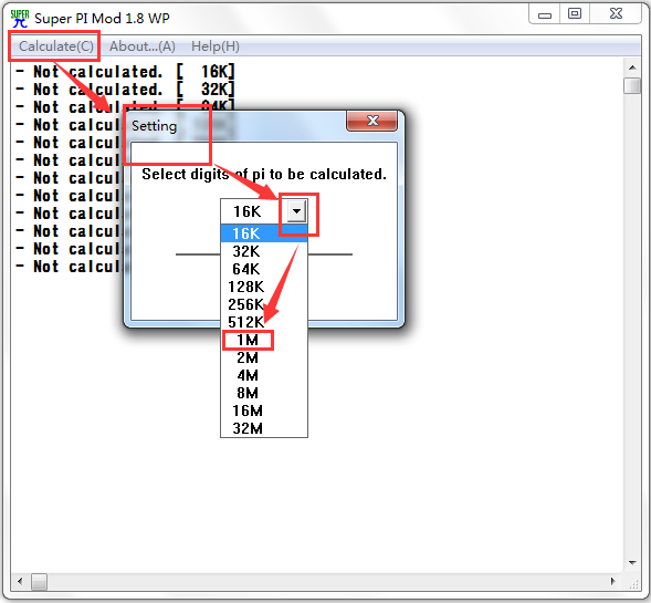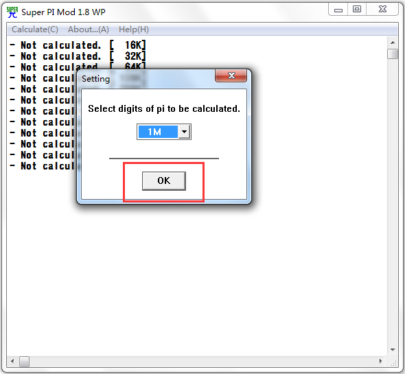选择你要计算的位数,(一般采用104万位)点击开始就可以了。视系统性能不同,运算时间也不相同。当然是时间越短越好!