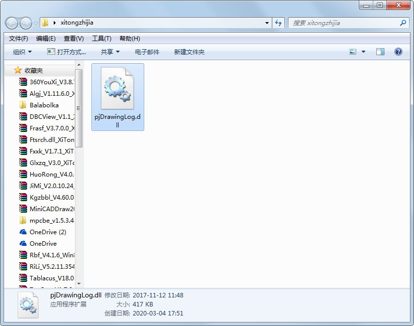 2、复制文件“pjDrawingLog.dll”到系统目录下;