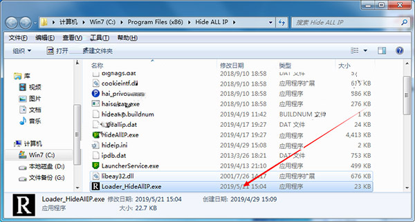 5、之后将Loader_HideAllIP.exe补丁移动复制到软件安装目录位置中,以管理员身份运行,注意以后使用的时候始终通过“Loader_HideAllIP.exe”作为管理员运行程序;