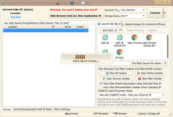 Hide ALL IP是一款可以隐藏用户真实IP地址的软件,保护你的隐私,隐藏所有应用程序和游戏IP,将你的真实IP更改为其它的私人服务器IP来保护您的在线身份。您可以随便设置一个新的IP替换本机IP,通过虚拟的地址连接到网络,保护你的网络安全,放心访问互联网的所有资源!