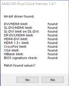 AMD/ATI Pixel Clock Patcher修改了AMD/ATI视频驱动程序,通过消除单链路DVI和HDMI的165 MHz像素时钟限制、双链路DVI的330 MHz限制和VGA的400 MHz限制,允许更高的分辨率和刷新率。