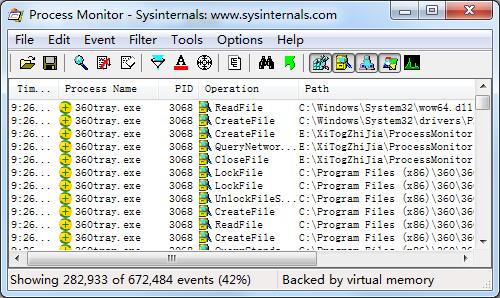procmon是一款功能简单且可靠的资源管理工具,可以在软件界面显示当前电脑上的全部进程,可以将进程资源数据显示,支持查看执行时间、线程、路径,也可以查看注册表变化,让用户对当前的程序更加了解。