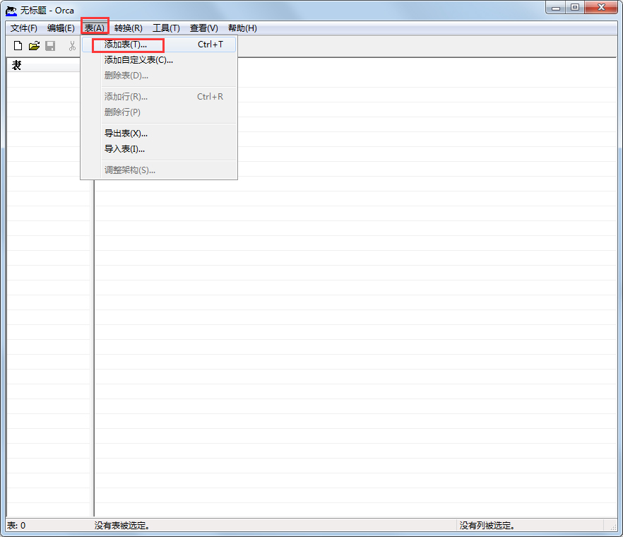 “导出表”和“导入表”选项位于“表”菜单上。“导出表”选项将表导出为可用文本编辑器(如记事本)编辑的文本格式。导出的表具有扩展名 .idt。可以使用“导入表”操作将这些 IDT 表导入到 Orca 编辑器中。