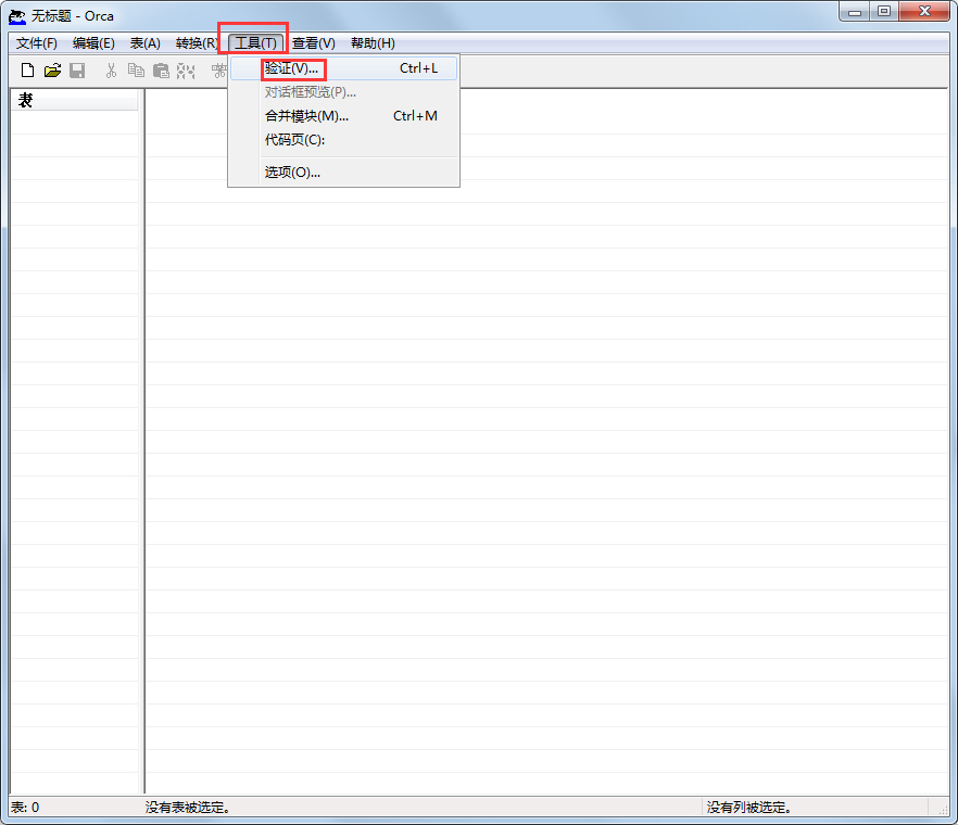 从“工具”菜单上单击“验证”时,会在 Orca 编辑器内运行验证。如果您使用的是最新的 Windows Installer SDK 中包含的 Orca 编辑器,则会出现可运行的可用评估文件的下拉列表。