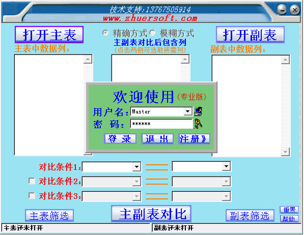 数据对比软件能对单张数据表格进行筛选、去重复、数据透视、有条件汇总及15位身份证号与18身份证号转换等功能;对两张数据表格进行精确或模糊关联 ,多条件对比,并能随意提取其中任一表中独有、两表共存、重复出现的数据及对两表中的数据进行有效合并,适用于工作中经常和EXCEL等各种表格数据打交道的人员使用。