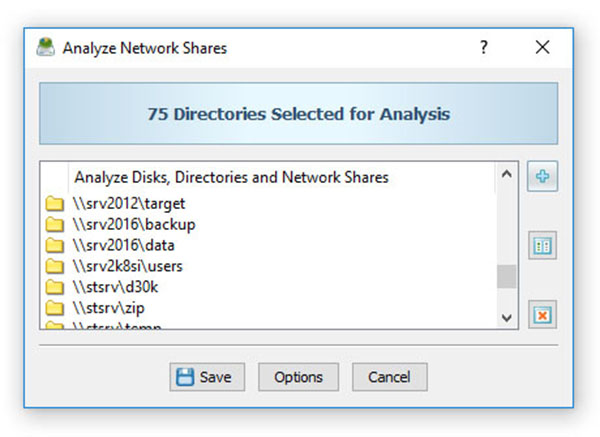 Disk Savvy Pro允许您扫描网络,发现网络服务器和NAS存储设备,自动检测所有可访问的网络共享并分析数百个网络服务器和NAS存储设备中的磁盘空间使用情况。此外,用户还可以将检测到的服务器和NAS存储设备的列表(包括每个服务器的网络共享列表)导出为HTML,PDF,文本和CSV报告。
