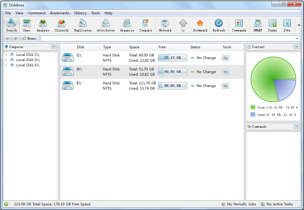 DiskBoss提供了先进的磁盘空间使用情况的分析能力,允许一个来分析一个或多个本地磁盘。
