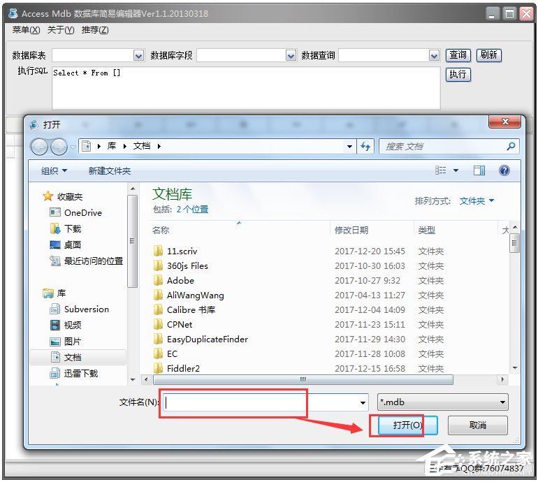 1.2在打开窗口中找到要查看的mdb数据库所在的位置,点击打开。