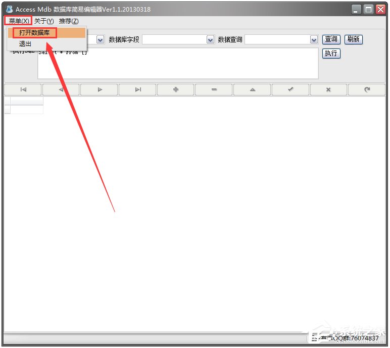1.1打开软件—菜单—打开数据库。