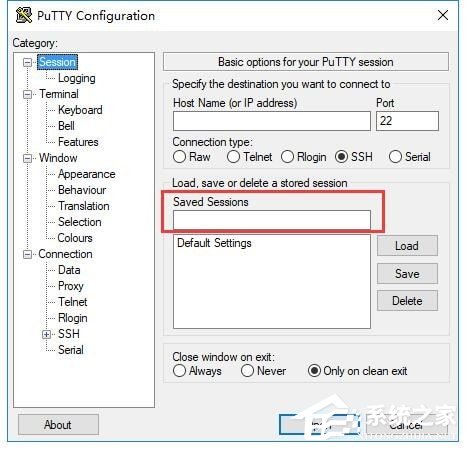 2、在“Saved Session”的输入栏中输入将要创建的任务名,然后点击后方的“Save”按钮,就能将任务保存下来;