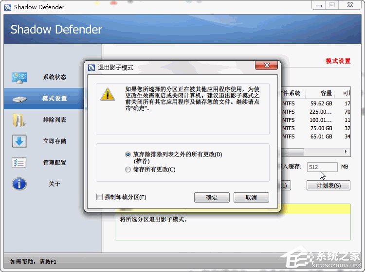 c.「重要」非系统分区退出影子模式后会让你选择保存或者放弃对该分区数据的更改操作,可在不重启的情况下完全退出(除非有进驻于系统的进程);系统分区退出影子模式都需要重启。