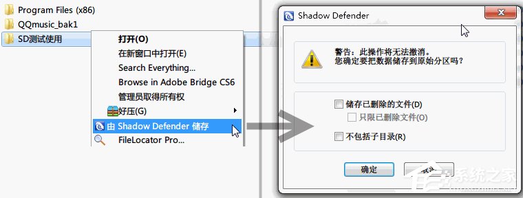 当然了,遇到想要保存的东西也不怕关机后丢失,在影子模式中可以很方便地进行穿透保存,即更改的数据可穿透“保护层”保存至原始的分区位置,很方便。