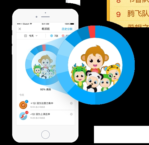 系统自动生成学生表现报表,并支持数据导出,极大地节省教师的统计 建档时间;家长加入班级后还可同步查看自己孩子的在校表现。