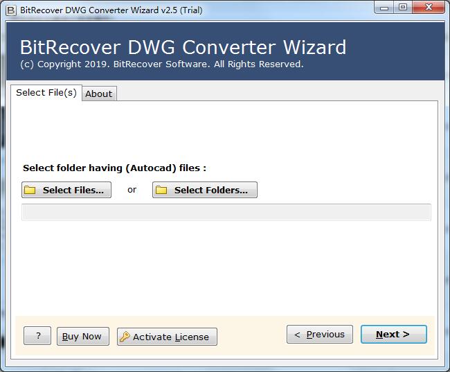 该软件完全加载了几个先进的功能,它是最好的功能之一,即选择文件选择AutoCAD的DWG文件,这是有帮助的转换单DWG(AutoCAD绘图)文件,而第二个选项是选择文件夹,允许转换完整的DWG文件夹有多个DWG文件。