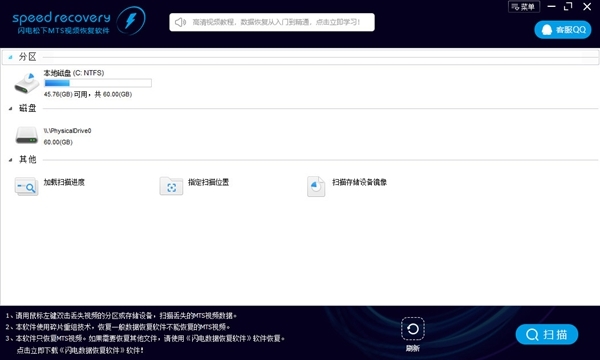 闪电松下MTS视频恢复软件可以扫描任何存储设备或存储镜像文件。