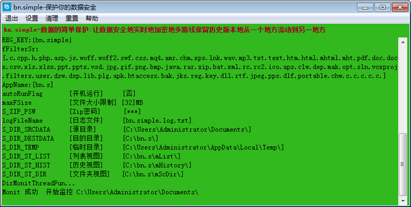 程序会监控源目录,适时地将源目录中修改过的文档文件压缩加密复制到目的目录。