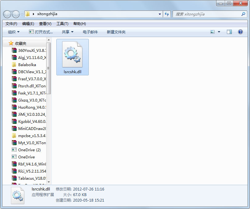 2、将lsrcshk.dll文件放到提示丢失的文件的程序目录下;