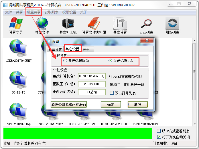 1、一键获局域网在线计算机。