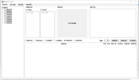此次主要是重新梳理了一下苏宁易购试用的申请实现方式,由于此前过于操作繁复,现在做了优化后效果非常明显。但集成的淘宝试用在获取大量数据时很容易解析异常后中断。