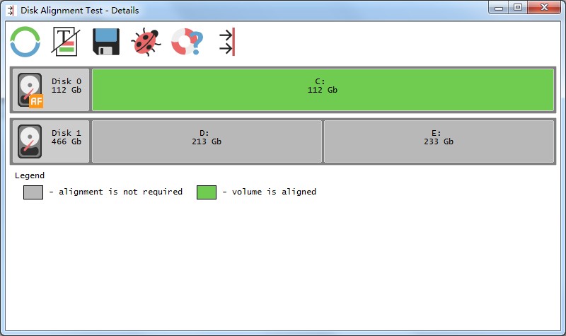 Disk Alignment Test是一款十分受欢迎且能够优化磁盘性能的工具,通过这款软件能对磁盘进行对齐从而达到最佳性能,软件能够检测出磁盘和分区是否对其。