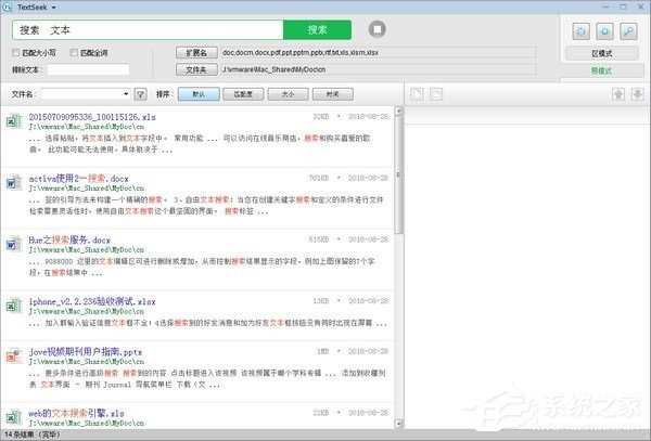 6、易模式用于搜索区外的文件夹或频繁变更搜索范围的需求,是一种临时使用的模式。在这种模式中,用户点击搜索后才开始扫描文档,所以易模式搜索比较慢,但一找到匹配结果(哪怕仅一个)就展示出来。搜索过程会持续进行,直到用户点击停止按钮或者所有文档都被扫描;