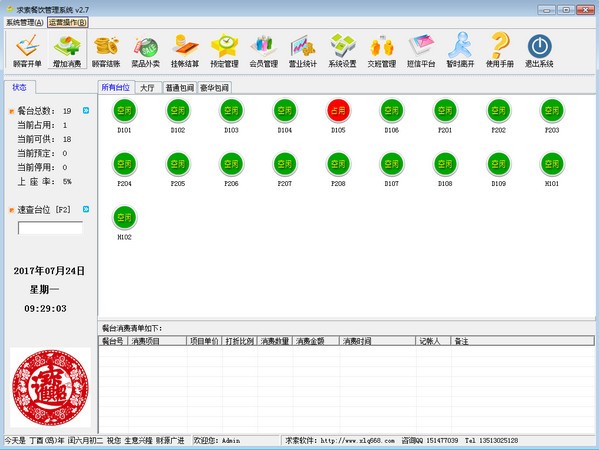 求索餐饮管理系统是一款免费的餐饮管理系统,它适用于中小型餐厅、酒店使用的餐饮管理软件,软件操作简单、界面简洁,支持顾客开单、增加消费、宾客结账、菜品外卖、会员管理、交班结款以及各种营业统计的查询、汇总分析。