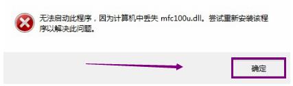 2、当文件损坏或丢失时,当用户运行软件或游戏时,系统将显示“没有找到mfc100u.dll”和“没有找到mfc100u.dll”。